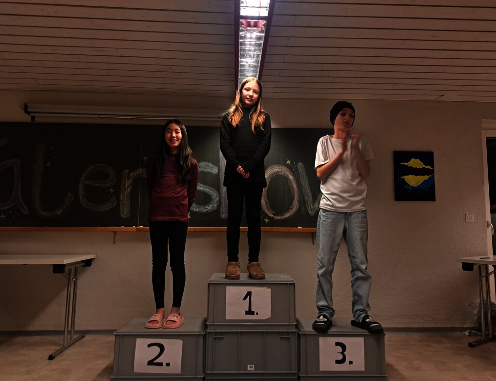 Wir wurden geweckt um 7:15 Uhr. Um 8:00 Uhr gab es Frühstück. Um 9:15 Uhr waren wir auf den Ski. Wir fuhren mit dem Skilift hoch auf die Piste und dort gab es ein Ski-Rennen. Die Fortgeschrittenen, Mittel und Anfänger fuhren 2-mal das Rennen. Zum Mittagessen gab es Chicken Nuggets, Reis, Blumenkohl und Brokkoli. Um 13:30 gingen wir wieder mit unserer Gruppe auf die Piste. Wir fuhren bis um 16:30 Uhr Ski. Danach konnte man im Lagerhaus Spiele spielen. Später um 18:15 haben wir ein Lied gesungen, direkt danach haben wir Reste von der ganzen Woche gegessen. Nachdem wir gegessen haben, schrieben wir den Bericht. Zunächst gab es eine Pause und nach der Pause gab es ein Rangverlesen. Direkt nach dem Rangverlesen war die Talent Show. Wie immer gab es nach der kleinen Pause ein Hörspiel vor der Nachtruhe. Und dann gingen wir schlafen.