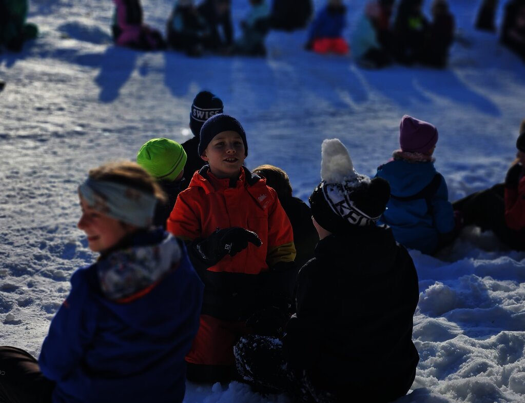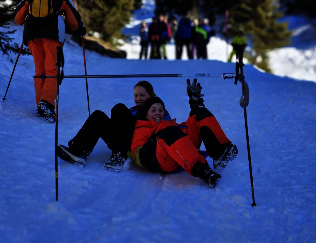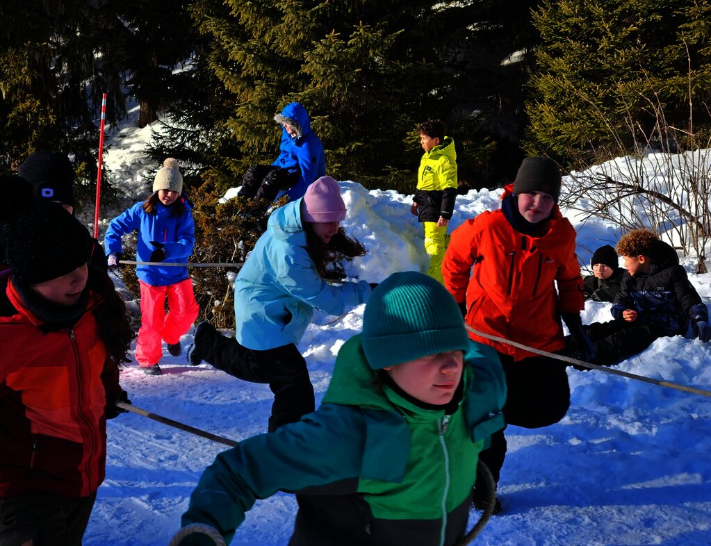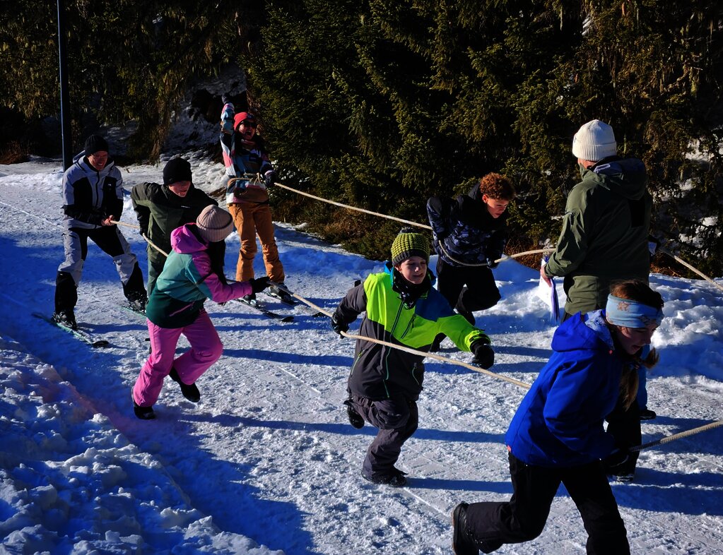 Um ca. 12:00 waren wir wieder zurück im Lagerhaus und freuten uns auf ein leckeres Mittagessen des Küchenteams. Am Nachmittag fand die lustige Winterolympiade bei sehr schönem Wetter statt. Team Violett wurde Erster mit 10 Punkten. Nach der Winterolympiade wurden wir mit einem feinen Punch aufgewärmt. Wir durften danach in selbst entschiedenen Gruppen ins Dorf einkaufen gehen. Später gab es ein sehr gutes Abendessen und ein grandioses Dessert. Den Abend durften wir dann selbst gestalten.