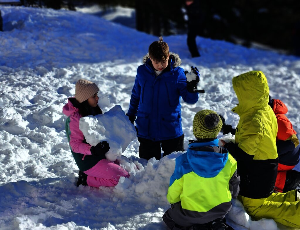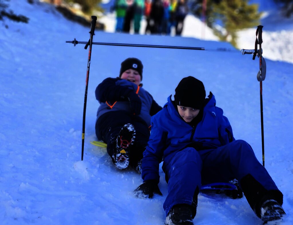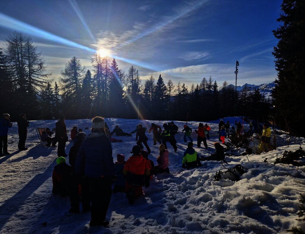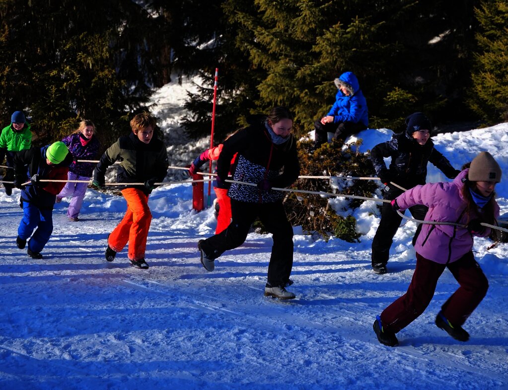 Um ca. 12:00 waren wir wieder zurück im Lagerhaus und freuten uns auf ein leckeres Mittagessen des Küchenteams. Am Nachmittag fand die lustige Winterolympiade bei sehr schönem Wetter statt. Team Violett wurde Erster mit 10 Punkten. Nach der Winterolympiade wurden wir mit einem feinen Punch aufgewärmt. Wir durften danach in selbst entschiedenen Gruppen ins Dorf einkaufen gehen. Später gab es ein sehr gutes Abendessen und ein grandioses Dessert. Den Abend durften wir dann selbst gestalten.