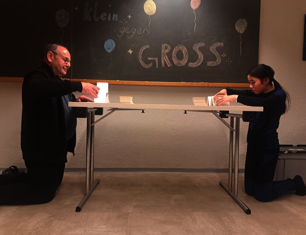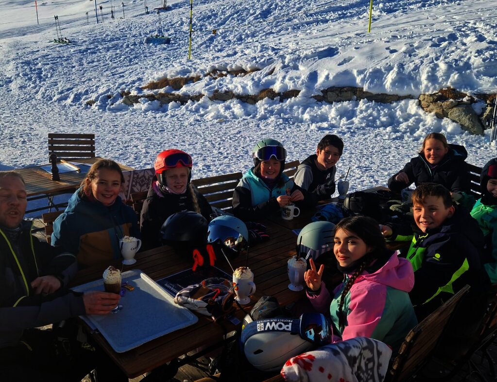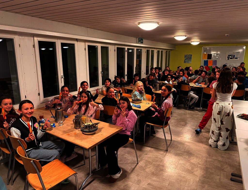 Heute hatte Vanja Geburtstag. Am Morgen starteten wir mit einem guten Frühstück und einem Geburtstagslied. Wir gingen Skifahren auf den Pisten. Um ca. 12:00 Uhr gab es Mittagessen. Danach gingen wir wieder Skifahren. Manche Gruppen haben etwas getrunken im Restaurant, zum Beispiel Rivella. Wir haben Abendessen gegessen. Es gab Spaghetti mit verschiedenen Sossen. Zum Dessert gab es Glace und Kuchen. Dann gab es die «Klein gegen GROSS»-Show.
