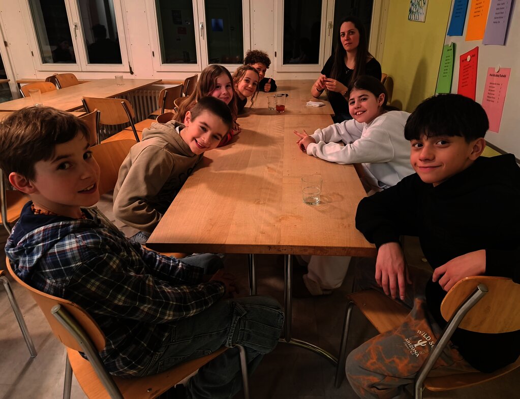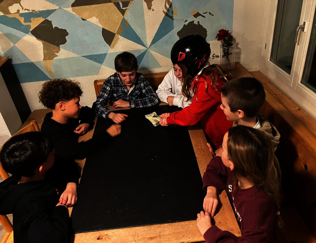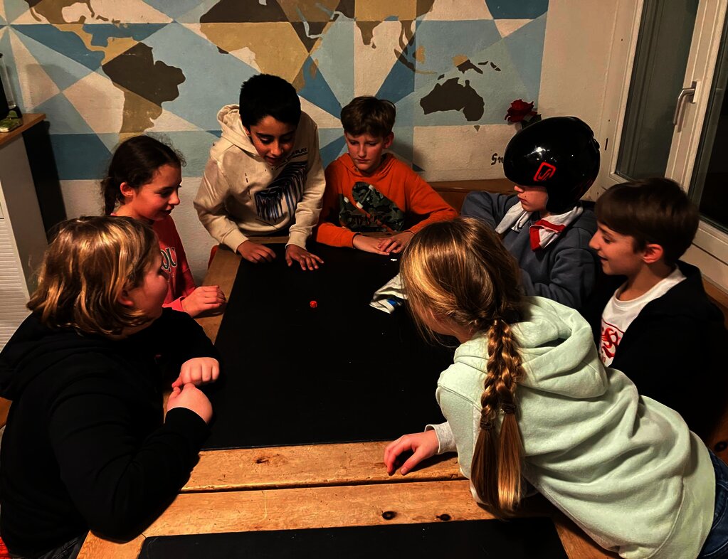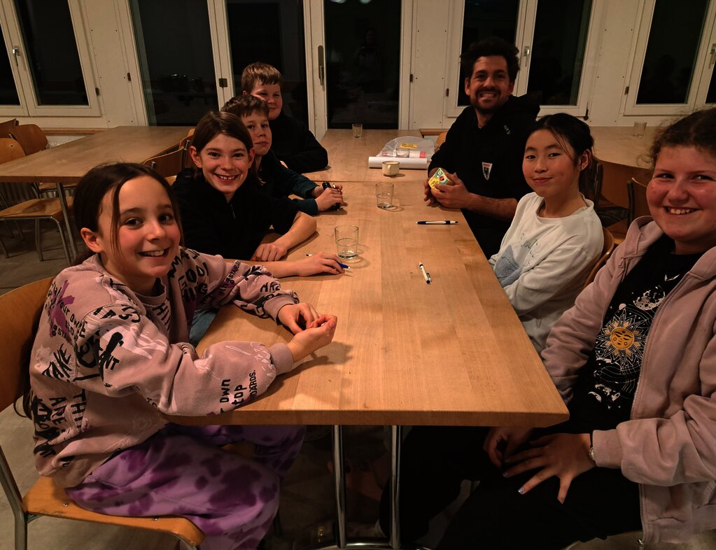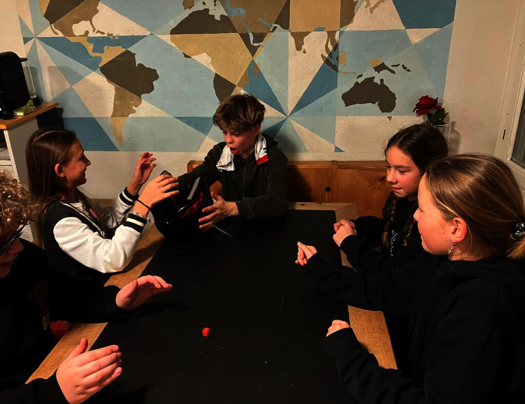 Im Anschluss durften wir raus, um im Schnee zu spielen. Danach gab es ein wohlverdientes Znacht. Es gab Hörnli mit Gehacktem, es war suuuuper lecker. Zum Abschluss des Tages spielten wir Spiele und hörten uns Hörbücher an. Um 22:00 war Nachtruhe und die Vorfreude auf das Ski- und Snowboard fahren war riesig.