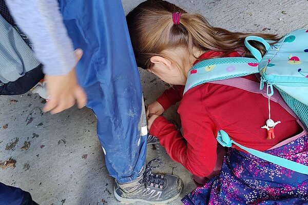 Fünf Schulwochen sind vergangen als der erste gemeinsame Event des Zyklus 1 stattfand. Die Kinder freuten sich auf den Heimattag. Während die 1. und 2. Klässler ein paar extra Schlaufen bis zum Brunnen am Tüttigrabenweg nahmen, konnten die Kindergartenkinder durch ihre Abkürzungen zeitgleich an diesem Ort eintreffen und gemeinsam Znüni essen. Die Wiedersehensfreude mit den früheren Gspändli aus den verschiedenen Stufen war gross. Die Kindergartenlehrpersonen hatten sich zu diesem Anlass ins Zeug gelegt. Mit einer kurzen eindrücklichen Theateraufführung wussten nun die Kinder über die Heimatsage des Tüttigrabenhund Bescheid. Ist das wirklich geschehen oder doch nicht? Das wusste zum Schluss keiner. Es wurde kurz in den Tüttigraben geschaut. Ein Schild erinnert daran aber sonst nichts zu sehen!