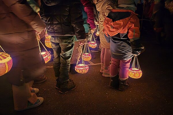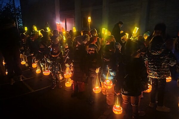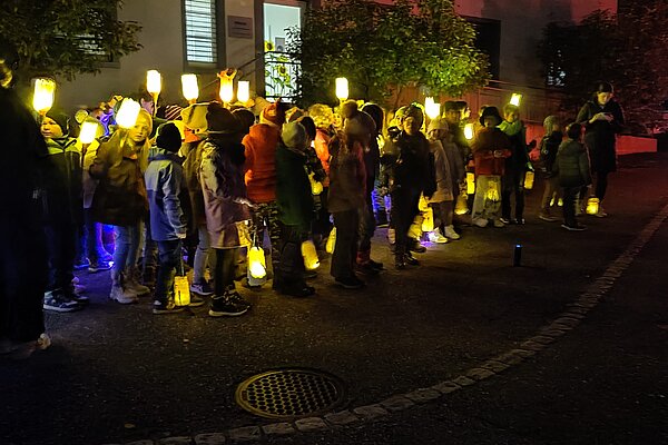 Als die Sonne unterging, begann unser Umzug. Die Dorflichter wurden gelöscht. Die vielen leuchtenden Räbeliechtli tauchten die Nacht in ein warmes, stimmungsvolles Licht. Begleitet wurde der Kinderzug von fröhlichem Gesang, der die ganze Umgebung erfüllte und für eine feierliche Atmosphäre sorgte.