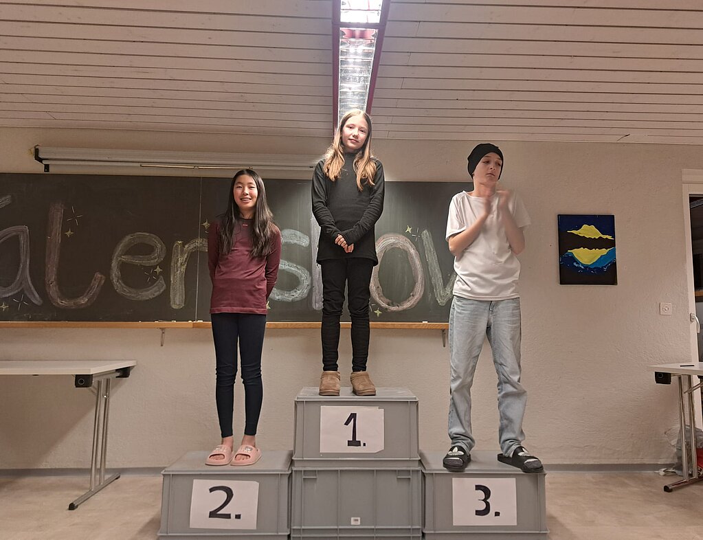 Wir wurden geweckt um 7:15 Uhr. Um 8:00 Uhr gab es Frühstück. Um 9:15 Uhr waren wir auf den Ski. Wir fuhren mit dem Skilift hoch auf die Piste und dort gab es ein Ski-Rennen. Die Fortgeschrittenen, Mittel und Anfänger fuhren 2-mal das Rennen. Zum Mittagessen gab es Chicken Nuggets, Reis, Blumenkohl und Brokkoli. Um 13:30 gingen wir wieder mit unserer Gruppe auf die Piste. Wir fuhren bis um 16:30 Uhr Ski. Danach konnte man im Lagerhaus Spiele spielen. Später um 18:15 haben wir ein Lied gesungen, direkt danach haben wir Reste von der ganzen Woche gegessen. Nachdem wir gegessen haben, schrieben wir den Bericht. Zunächst gab es eine Pause und nach der Pause gab es ein Rangverlesen. Direkt nach dem Rangverlesen war die Talent Show. Wie immer gab es nach der kleinen Pause ein Hörspiel vor der Nachtruhe. Und dann gingen wir schlafen.