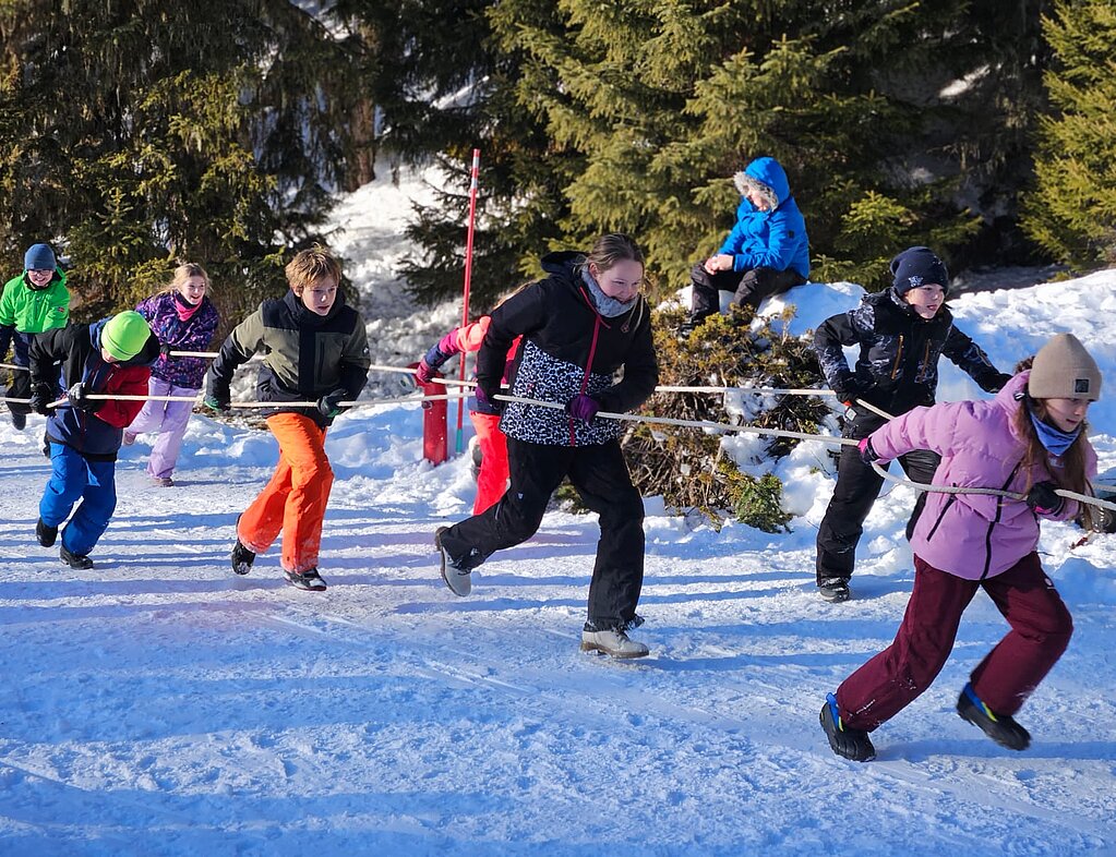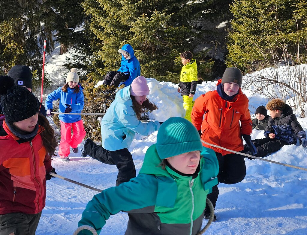 Um ca. 12:00 waren wir wieder zurück im Lagerhaus und freuten uns auf ein leckeres Mittagessen des Küchenteams. Am Nachmittag fand die lustige Winterolympiade bei sehr schönem Wetter statt. Team Violett wurde Erster mit 10 Punkten. Nach der Winterolympiade wurden wir mit einem feinen Punch aufgewärmt. Wir durften danach in selbst entschiedenen Gruppen ins Dorf einkaufen gehen. Später gab es ein sehr gutes Abendessen und ein grandioses Dessert. Den Abend durften wir dann selbst gestalten.