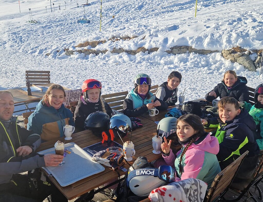 Heute hatte Vanja Geburtstag. Am Morgen starteten wir mit einem guten Frühstück und einem Geburtstagslied. Wir gingen Skifahren auf den Pisten. Um ca. 12:00 Uhr gab es Mittagessen. Danach gingen wir wieder Skifahren. Manche Gruppen haben etwas getrunken im Restaurant, zum Beispiel Rivella. Wir haben Abendessen gegessen. Es gab Spaghetti mit verschiedenen Sossen. Zum Dessert gab es Glace und Kuchen. Dann gab es die «Klein gegen GROSS»-Show.