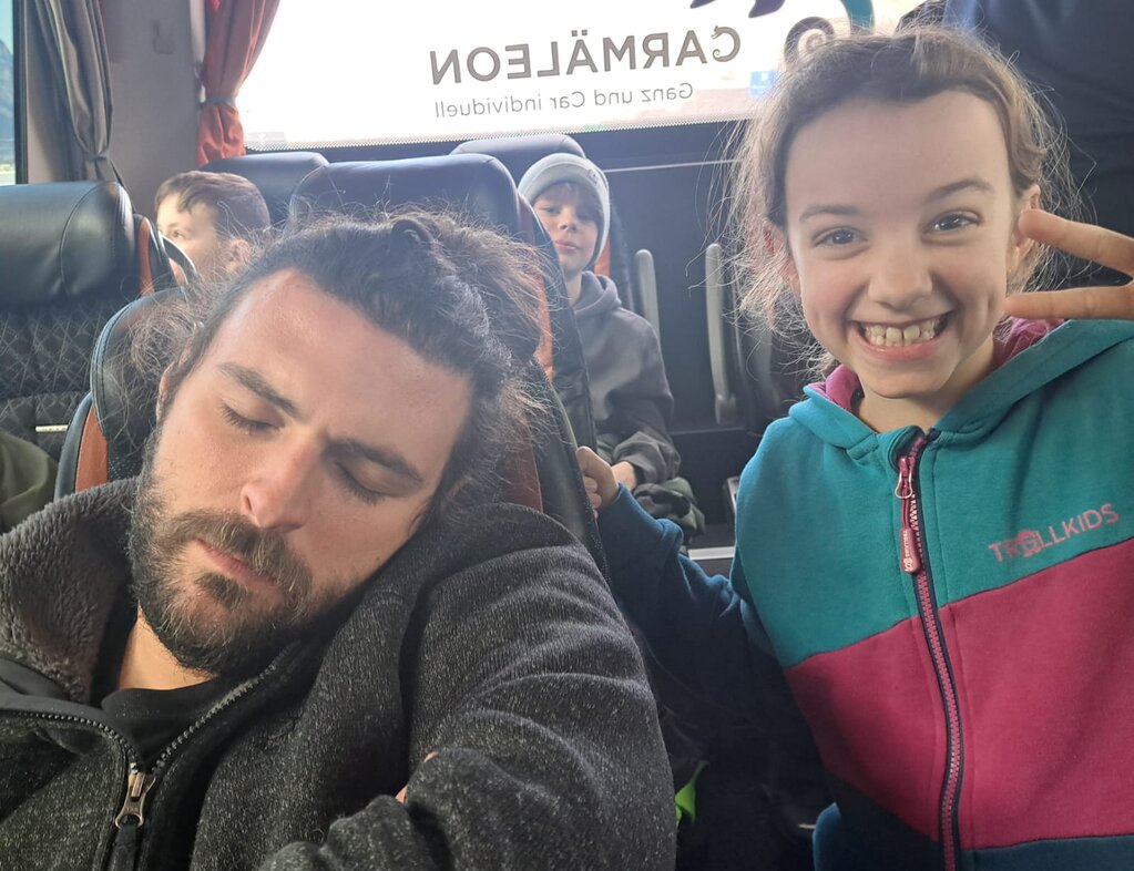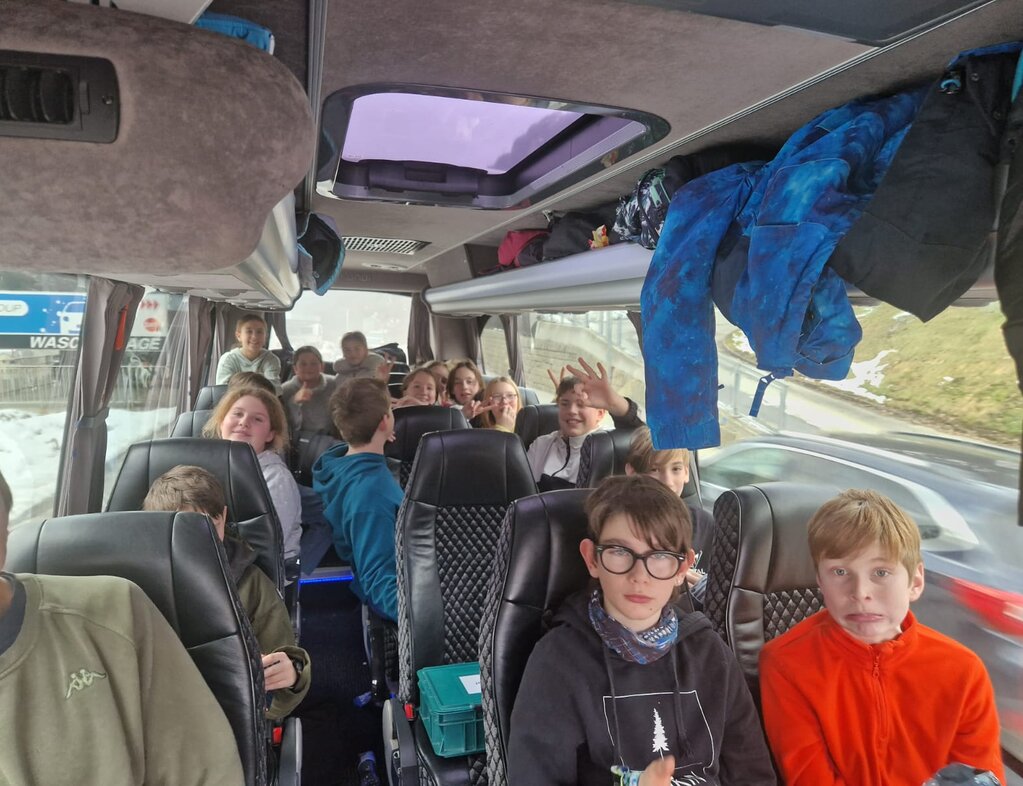 Um 08:00 gingen wir los auf die Bettmeralp. Es gab 2 Car, einen für die 6. Klässler und eine für die 4. und 5. Klässler. Bei den 4. und 5. Klässlern im Car schauten wir den Film Ratatouille. Es war sehr cool. So war es bei den 6. Klässlern: bei uns haben wir sehr viel geredet. Unser Fernseher ging nicht, darum konnten wir keinen Film gucken. Nach 3 Stunden kamen wir an bei der Raststätte. Danach hatten wir eine 30 Minuten Pause. Nach der Raststätte fuhren wir 1 Stunde nach Bettmeralp.