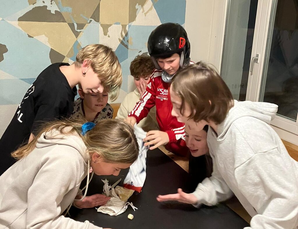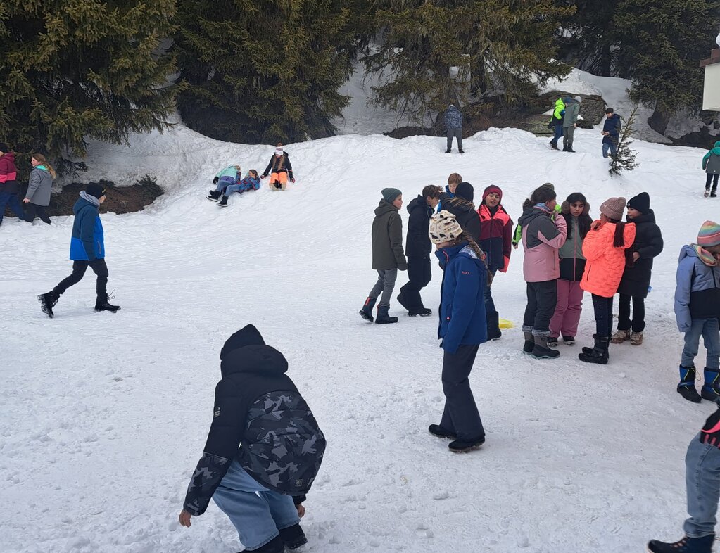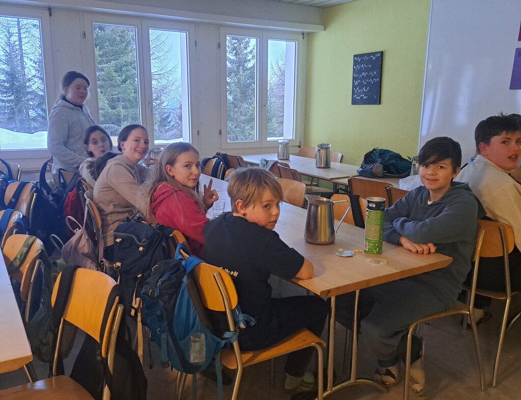 Als wir ankamen, spielten wir draussen im Schnee. Der Schnee war sehr hoch. Nach 20 Minuten durften wir rein. Danach hatten wir ein Quiz. Danach kamen unsere Koffer. Alle gingen in ihre Zimmer. Kurz danach haben alle ihre Kissen und Bettbezüge drangetan. Als nächstes hatten wir Spielzeit im Schnee. Anschliessend haben wir Abend gegessen. Zum Schluss haben wir unseren Tagesbericht geschrieben.