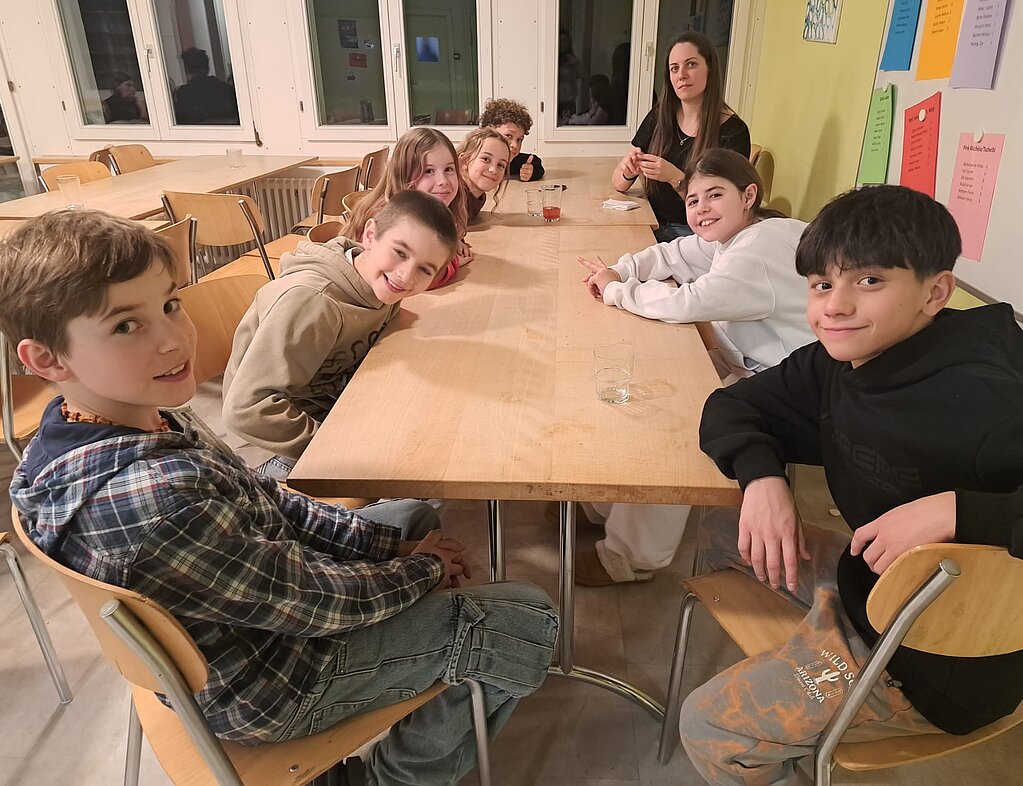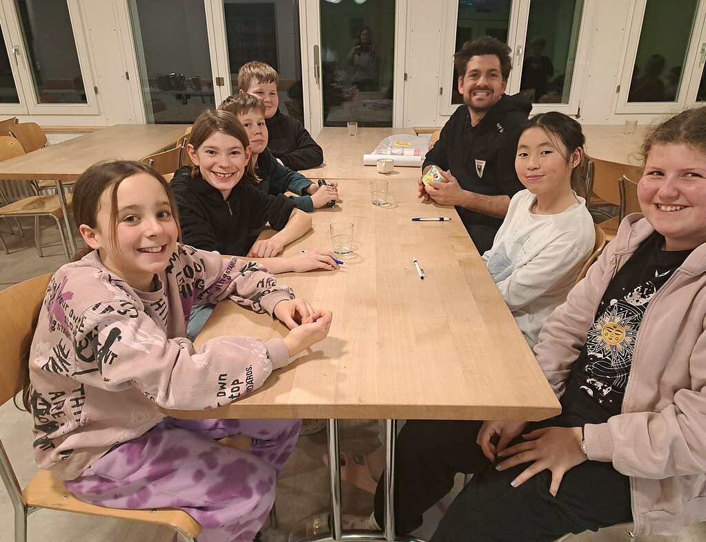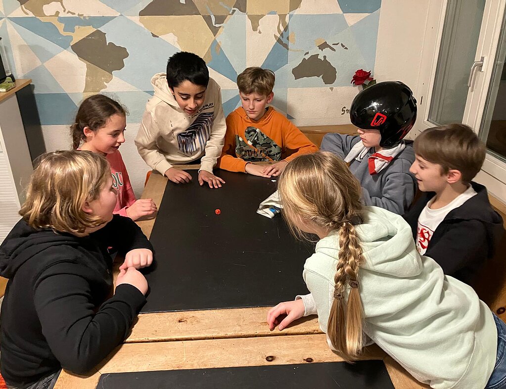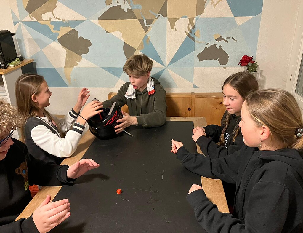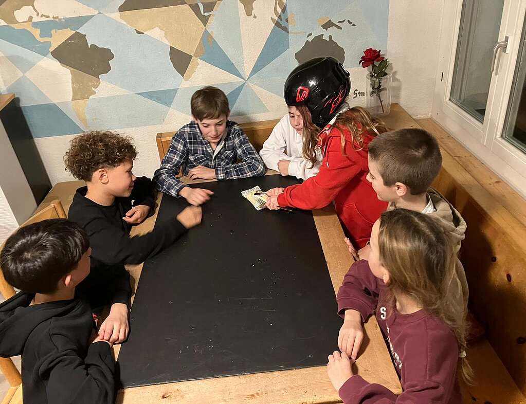 Im Anschluss durften wir raus, um im Schnee zu spielen. Danach gab es ein wohlverdientes Znacht. Es gab Hörnli mit Gehacktem, es war suuuuper lecker. Zum Abschluss des Tages spielten wir Spiele und hörten uns Hörbücher an. Um 22:00 war Nachtruhe und die Vorfreude auf das Ski- und Snowboard fahren war riesig.