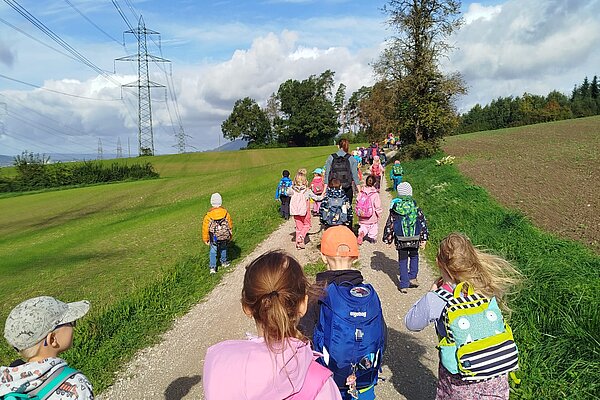 Fünf Schulwochen sind vergangen als der erste gemeinsame Event des Zyklus 1 stattfand. Die Kinder freuten sich auf den Heimattag. Während die 1. und 2. Klässler ein paar extra Schlaufen bis zum Brunnen am Tüttigrabenweg nahmen, konnten die Kindergartenkinder durch ihre Abkürzungen zeitgleich an diesem Ort eintreffen und gemeinsam Znüni essen. Die Wiedersehensfreude mit den früheren Gspändli aus den verschiedenen Stufen war gross. Die Kindergartenlehrpersonen hatten sich zu diesem Anlass ins Zeug gelegt. Mit einer kurzen eindrücklichen Theateraufführung wussten nun die Kinder über die Heimatsage des Tüttigrabenhund Bescheid. Ist das wirklich geschehen oder doch nicht? Das wusste zum Schluss keiner. Es wurde kurz in den Tüttigraben geschaut. Ein Schild erinnert daran aber sonst nichts zu sehen!
