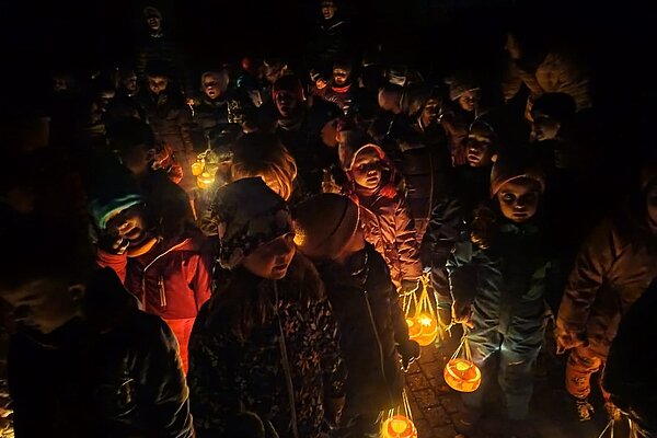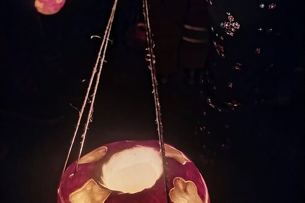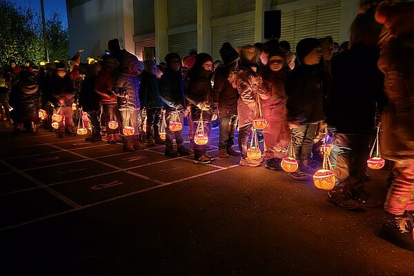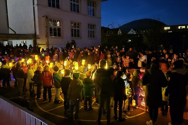 Als die Sonne unterging, begann unser Umzug. Die Dorflichter wurden gelöscht. Die vielen leuchtenden Räbeliechtli tauchten die Nacht in ein warmes, stimmungsvolles Licht. Begleitet wurde der Kinderzug von fröhlichem Gesang, der die ganze Umgebung erfüllte und für eine feierliche Atmosphäre sorgte.